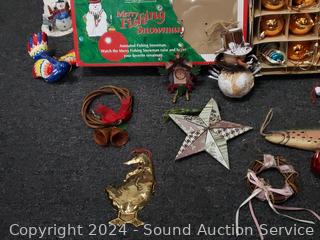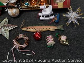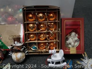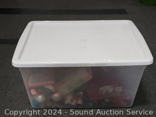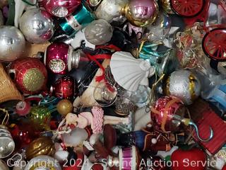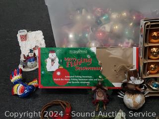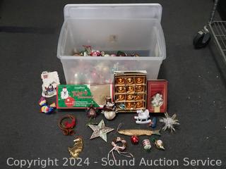 Lot #0202: Tote w/Lid with Assorted Christmas Ornaments & Other Decor