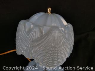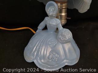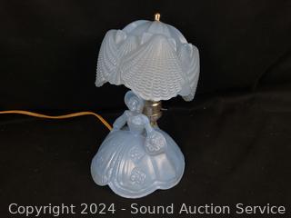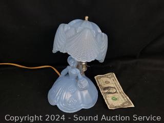 Lot #0201: Vintage Blue Glass Victorian Lady Boudoir Lamp