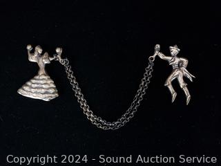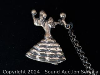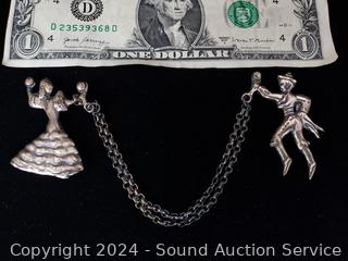 Lot #0022: Vintage Sterling Flamenco Dancer Brooches w/Chain