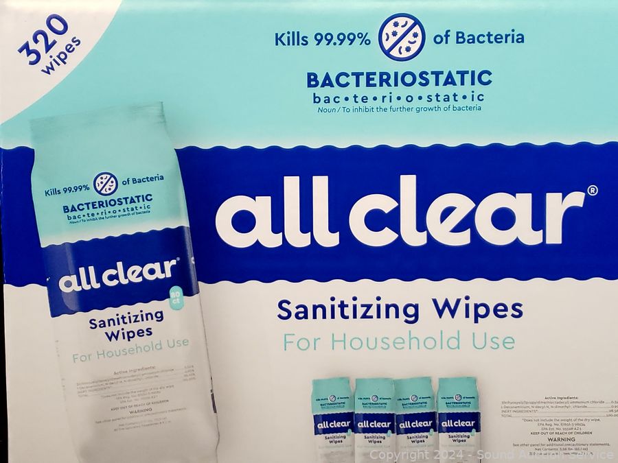 Lot #0229: (2) 320ct All Clear Household Sanitizing Wipes