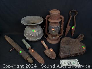Lot #0103: 7pc Assorted Rustic Tools, Collectibles