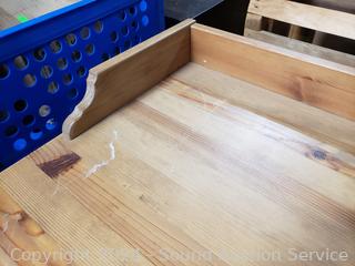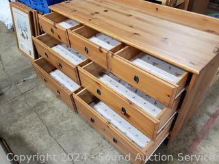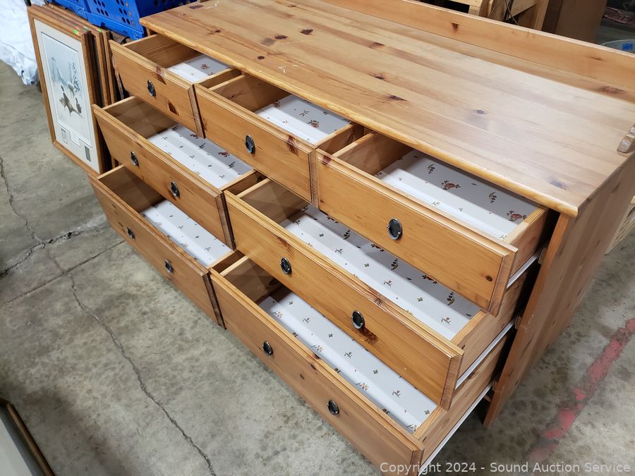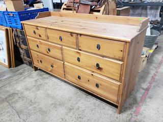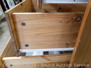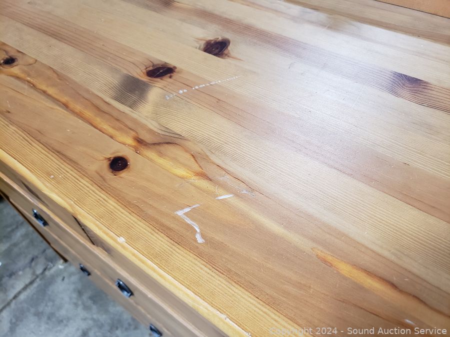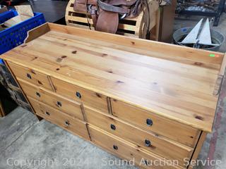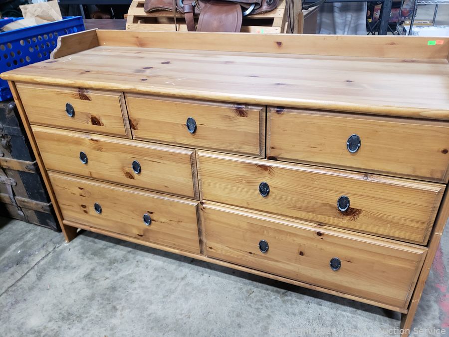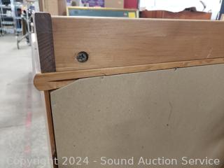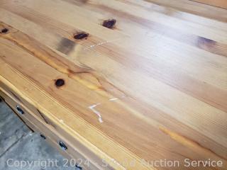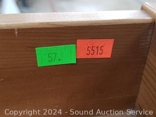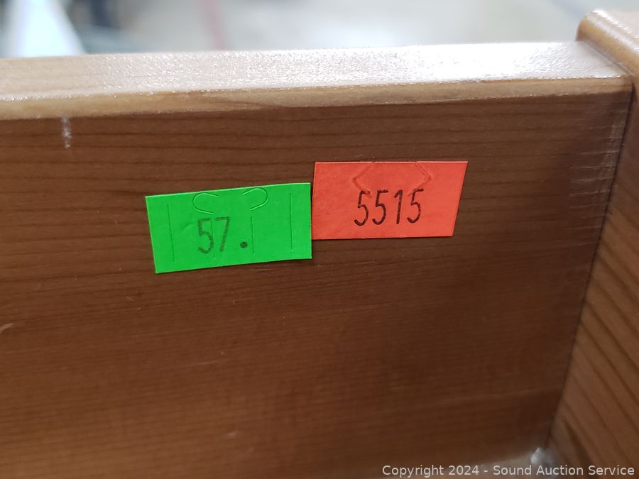 Some scuffs, wear to finish. Roller drawer guides. 32" H x 55" W x 19.5" D.
