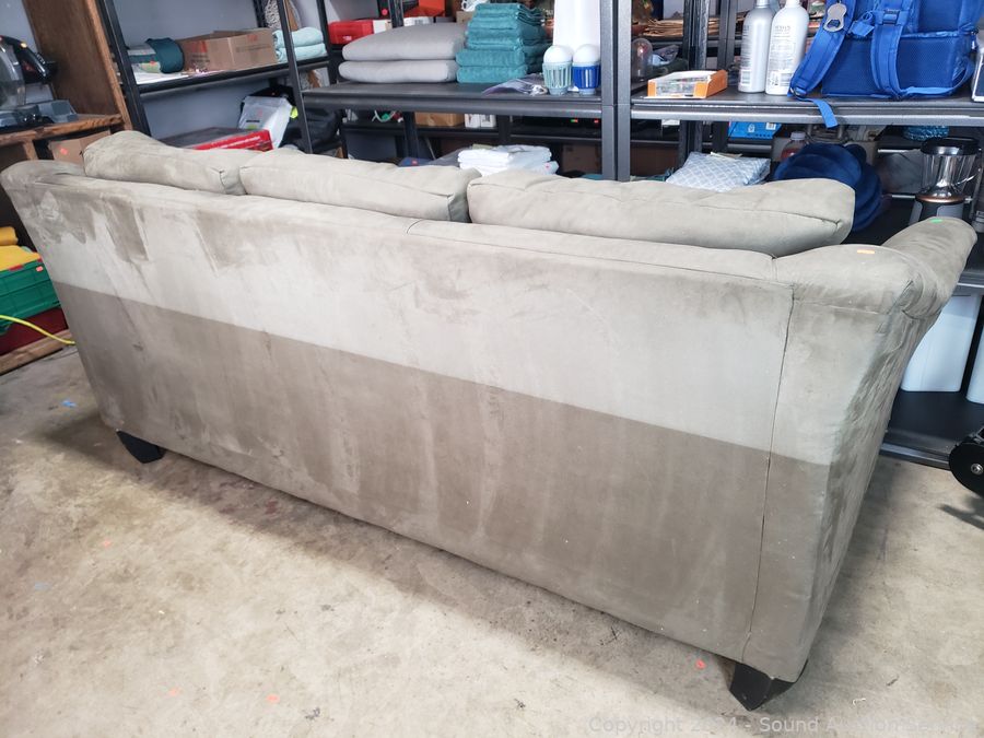 35" H x 85" L x 20" to seat. Don't see any major issues.