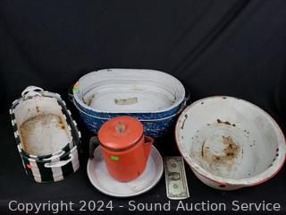 Lot #0106: Vintage Enamelware Pans