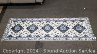 Lot #0310: Wyatt & Ash Blue Machine Washable 2ft x 6ft Runner Rug