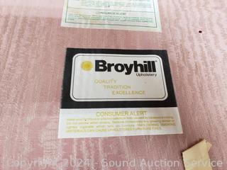 Signs of wear from use. Don't see any major issues. 44" H x 32" W x 19" to seat.