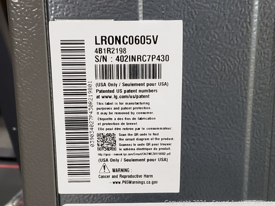 Appears to be brand new, functioning as intended. Model LRONC0605V, Serial 402INRC7P430. 43" H x 20.5" W x 21" D.