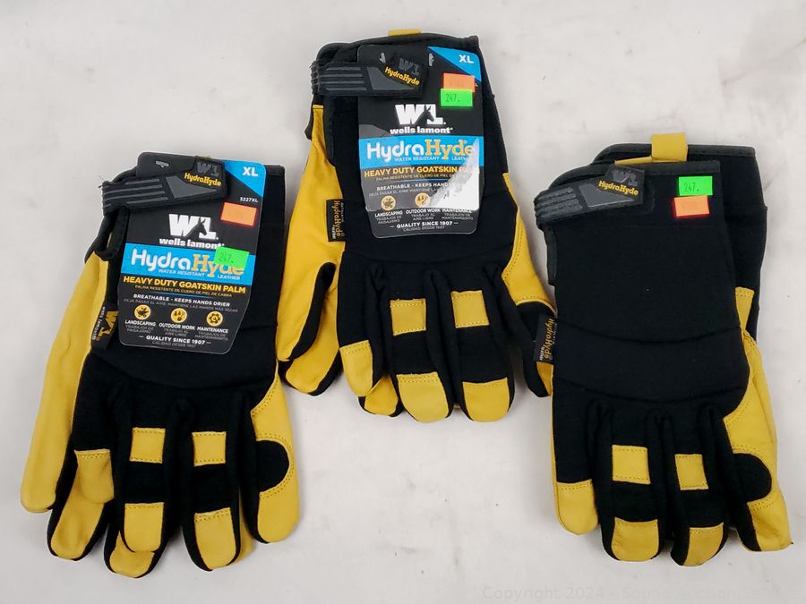 Lot #0247: 3 Wells Lamont Hydra Hyde Goatskin Work Gloves S:XL