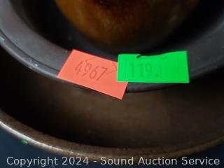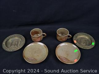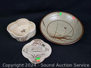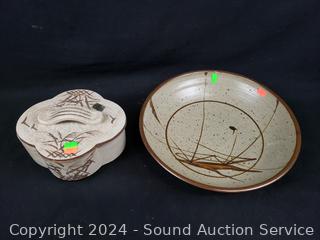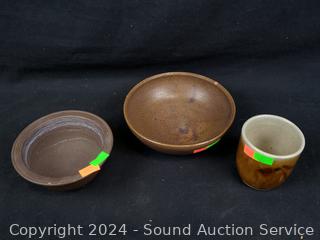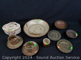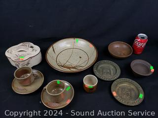 Lot #0119: 9pc Pottery Decor, Table Ware, 2 Brass Navy Ashtrays