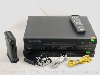 VHS player comes with remote, all have power. Motorola 16x4 Cable Modem model MB7420, Mitsubishi HS-U576 VHS player, Yamaha Natural Sound DV-S5950. Refer to photos for more details.