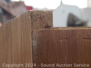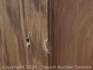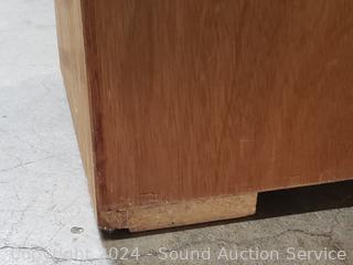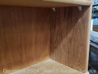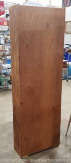 Wood fronts. 72.5" H x 24" W x 9.75" D. Light wear from use.