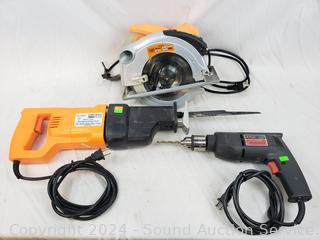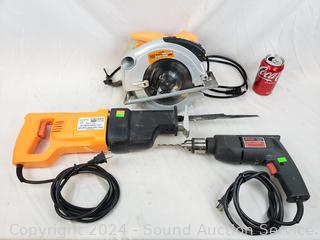Lot #0183:     Skil Circular Saw, Chicago Reciprocating Saw, Skil 1/2" Drill