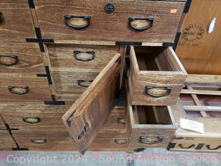302 Lots including Vtg. Japanese Tansu Chest, Rockwell Jointer, Digital Keyboards, Japanese 8-Drawer Chest, Drill Press, Signed Hand Woven Rugs, Signed Strawberry Shortcake Lamps, Artwork, Marantz & Altec Lansing Speakers, Assorted Asian Oriental Decor, Lladro Figures, Danish Mid-Century Teak Furniture, Pottery Decor, Assorted Hand Tools, Pewter Tableware, Vintage Seth Thomas Clocks, Assorted Ladies Clothing/Accessories, Navojoa Sand Painting, Atari Video Game System, DC/Marvel & Other Comic Literature, US Stamp Sheets, Record Albums, Bedding, Jewelry, Power Tools, Household Goods, Bed & Bath, 74pc Taylor Smith Taylor "Lazy Daisy" Mid-Century Dinnerware & Much More!!!