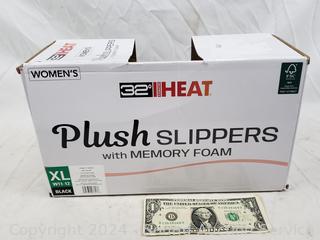Lot #0137: Women's 32° Heat Black Plush Memory Foam Slippers S:XL