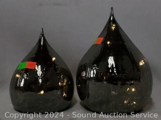 Lot #0220: 2 Silver Crackle Glass Tear Drop Lights