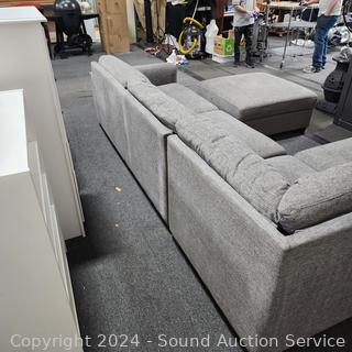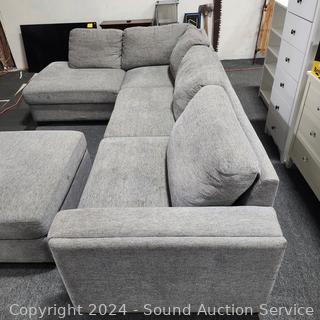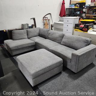 Lot #0003: Thomasville Grey Sectional Sofa w/Storage Ottoman