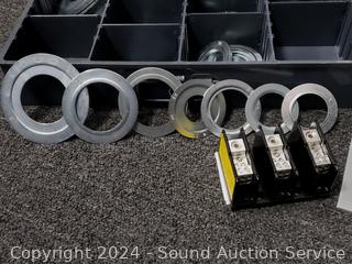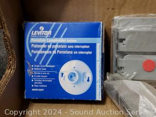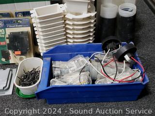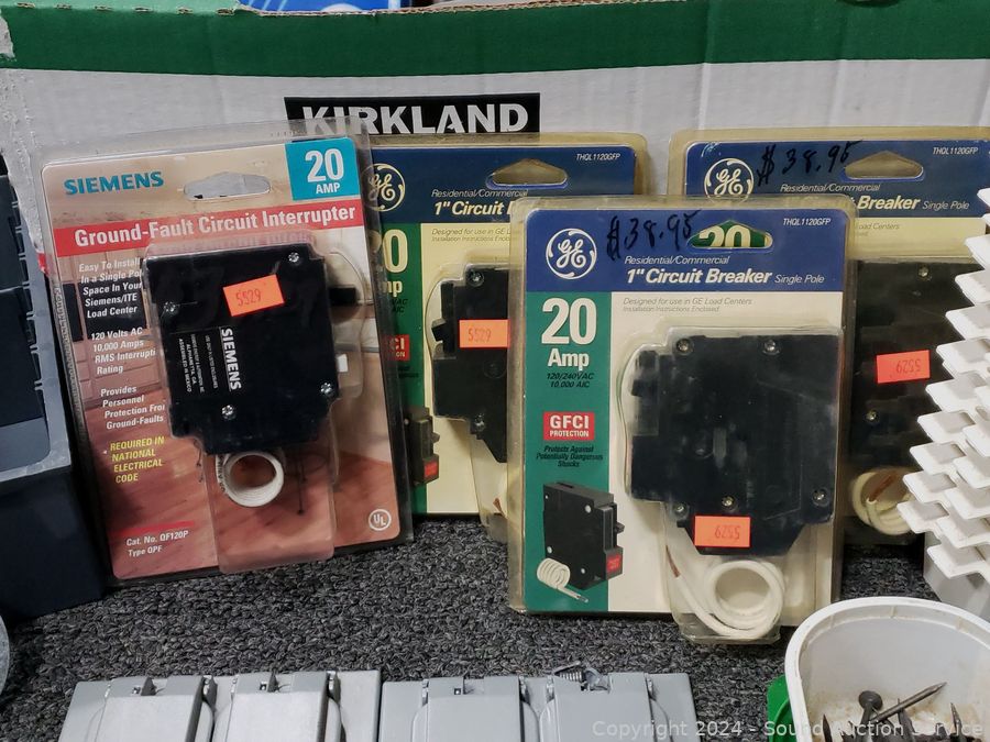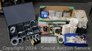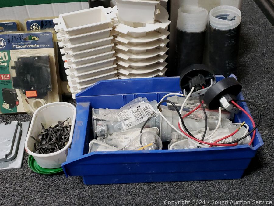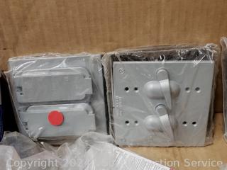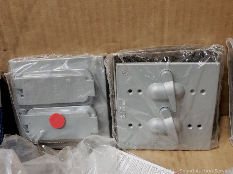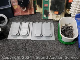 Circuit breakers, duplex covers, cold shrink cable sealers, etc. Refer to photos for lot contents, more details.