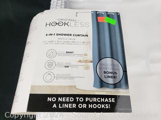 Lot #0213: Original Hookless Waffle White Shower Curtain & Liner