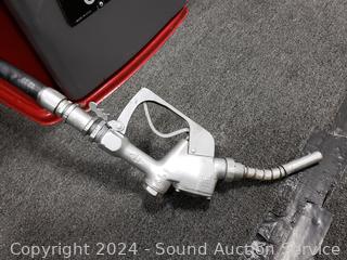 Lights work, cord is spliced together. Has a key, kind of stuck in hole, 1 side is unlocked, did not want to force it and break something. A few minor knicks, scratches, overall great cosmetic condition. Comes with hose & nozzle. Approx. 74" H x 21.5" W x 17" D.