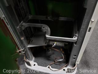 Green & White enameled, light works, with hose & nozzle Comes with key, lock works. Approx. 78" H x 22" W x 16" D. A few minor knicks, overall in great cosmetic condition.