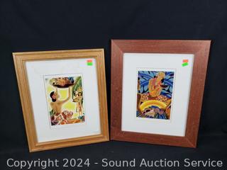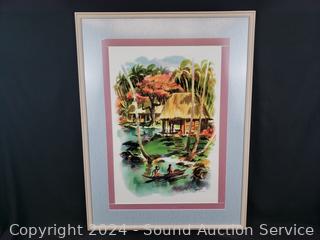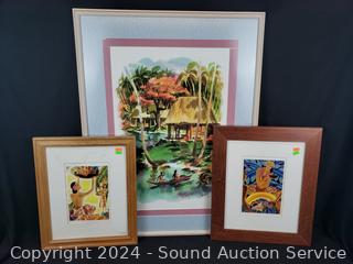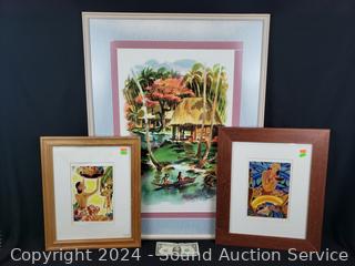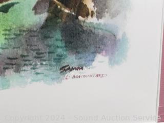 2 prints & signed watercolor, refer to photos for signature, hard to make out. 32.5" x 25" & 17.5" x 14.5". One with some water damage on matting.