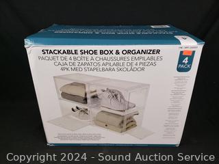 Lot #0194: 4pk Clear Stackable Shoe Box Organizers