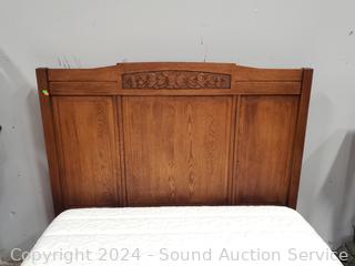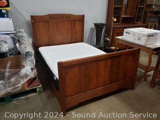 Lot #0012W: Antique Oak Full Bed Frame w/Ozette Mattress