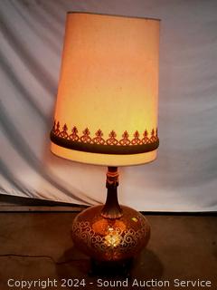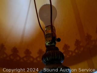 14" Dia. base, 18" Dia. shade. 3-Way switch, in great cosmetic condition.