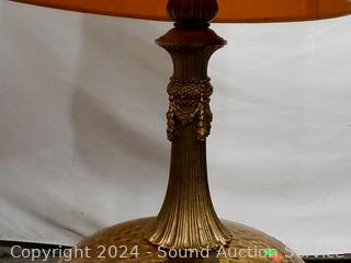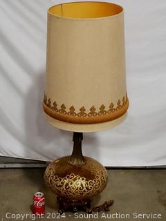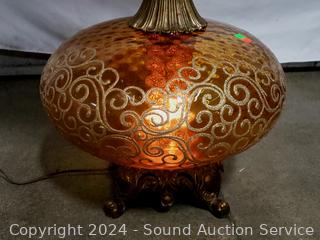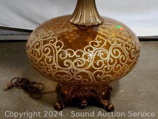 Lot #0064: Gold Scrolled Glass 45" Table Lamp