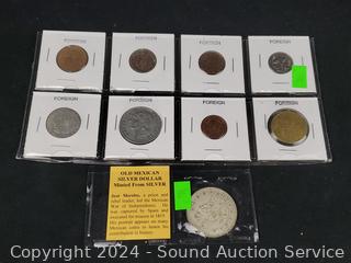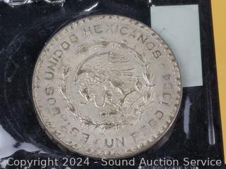 Lot #0036: 1964 Old Mexican Silver Dollar & Other Foreign Coins