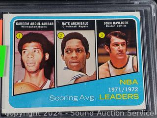 1995-96 Stadium #1 Michael Jordan Bulls Mint 9, 1992 Skybox #31 Magic Johnson Lakers NM-7, 1972-73 Topps #172 Jabar/Archibald/Havlicek #172 Scoring Leaders EX-5. ATTN: We are not sports/trading card, memorabilia experts or graders, please use your own judgement when bidding.