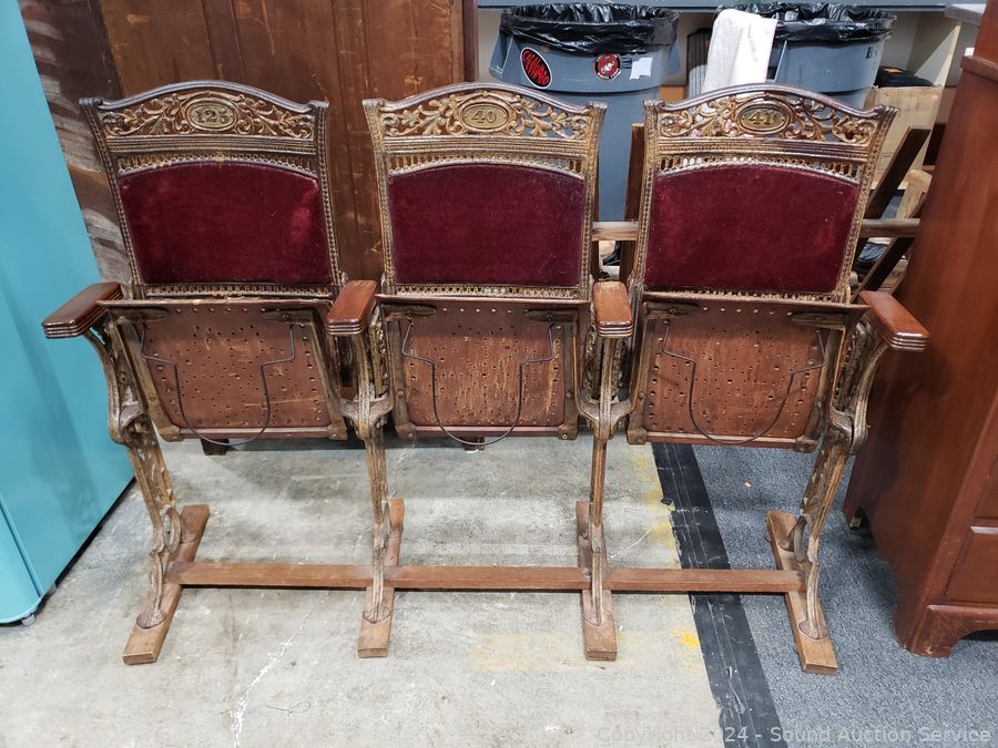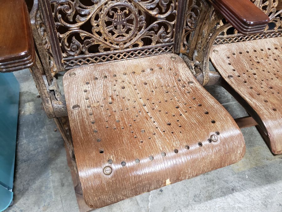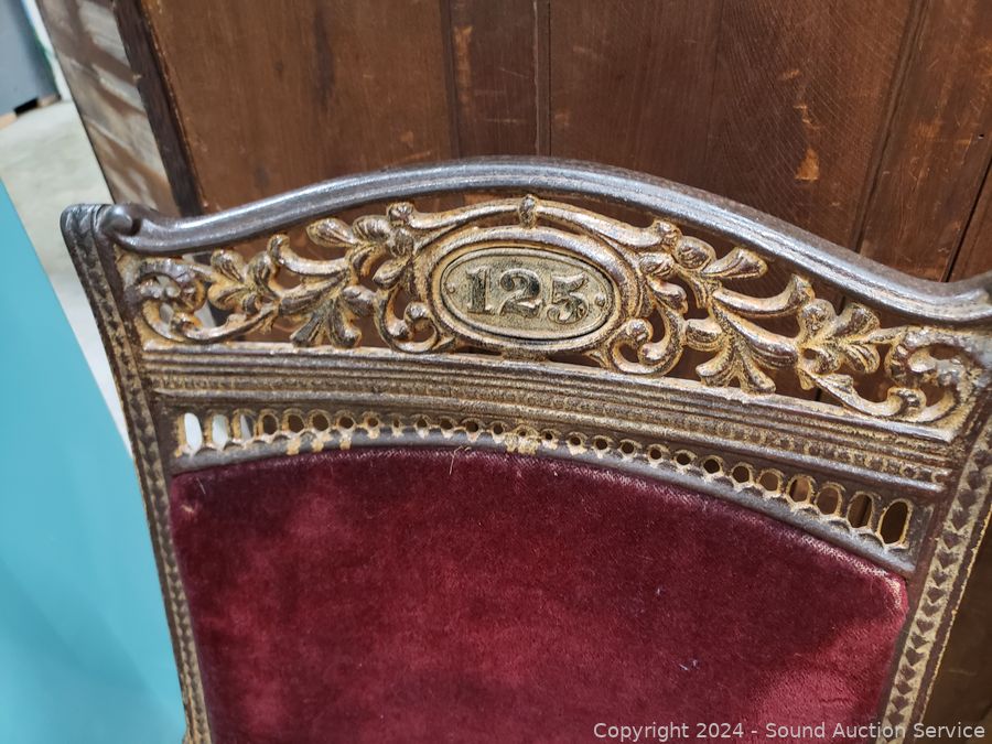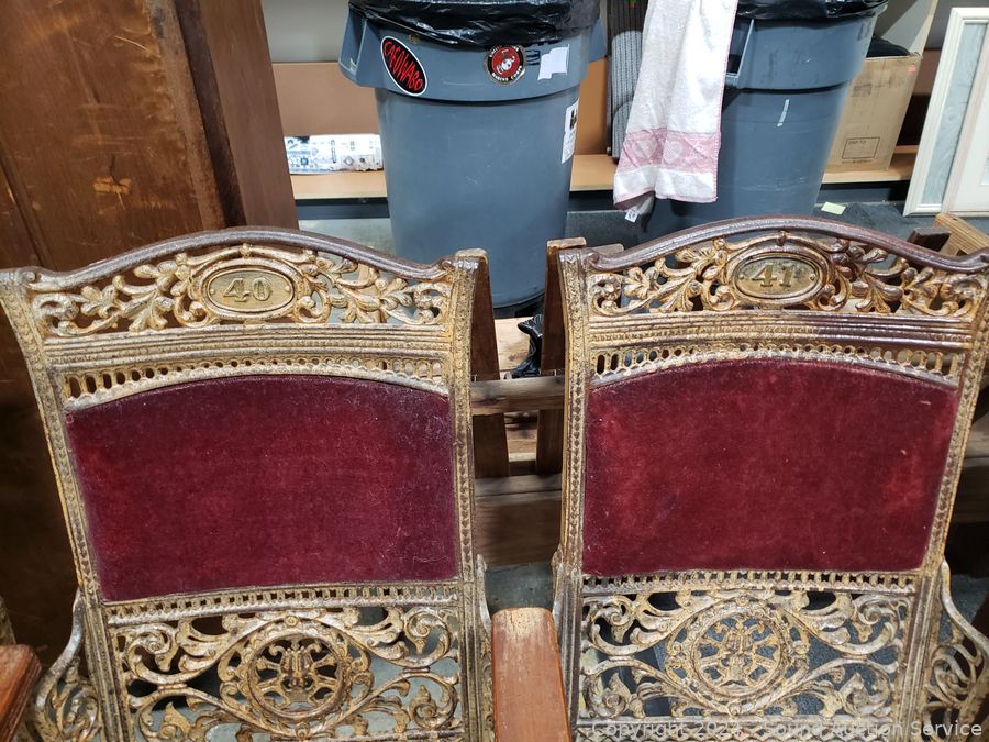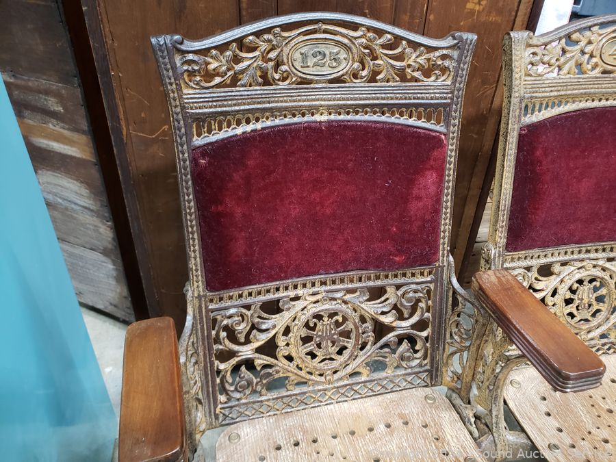 Lot #0234: Antique Cast Iron Velvet Theatre Seats