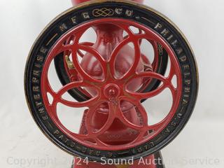 Looks to have been restored or just in great condition. Appears to be in functional condition, cranks smoothly. 13" H x 7" x 9".