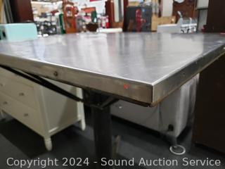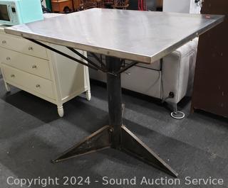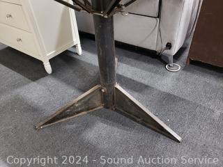 Some dents, wear to finish, rust spots on base. 39" H x 42" x 34".