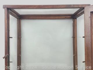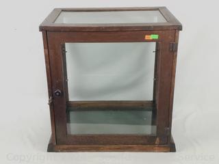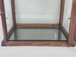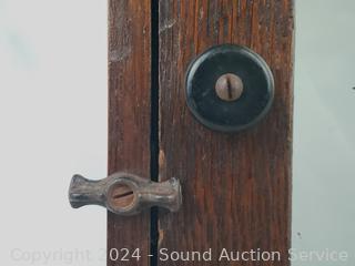 17" H x 16" x 10.75". Olde patina, some wear to finish, don't see any major issues.