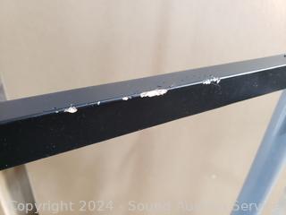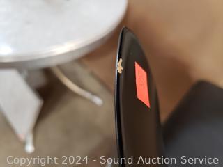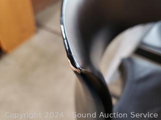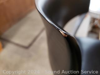 A few chips in black finish of the back rests, overall great condition. Matches lot #1. 40.5" H x 17" W x 28.5" to seat.