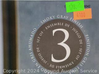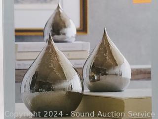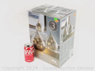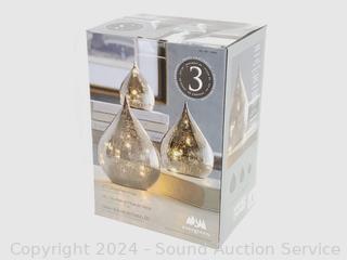 Lot #0178: 3pk Smokey Gray Crackle Glass LED Raindrop Fairy Lights