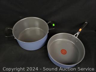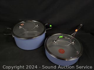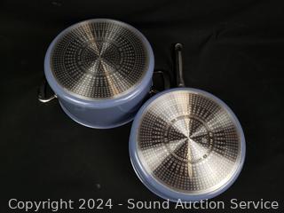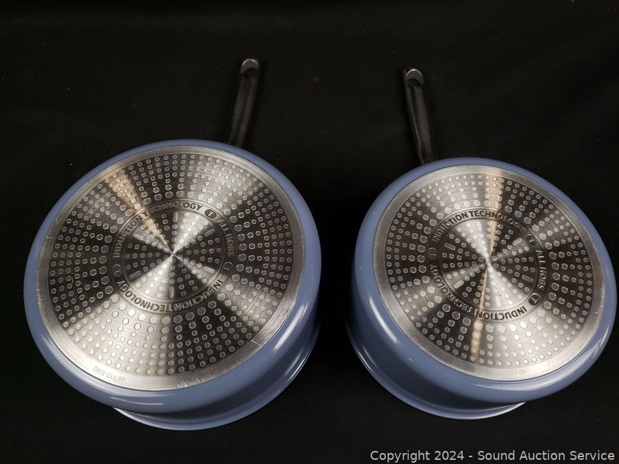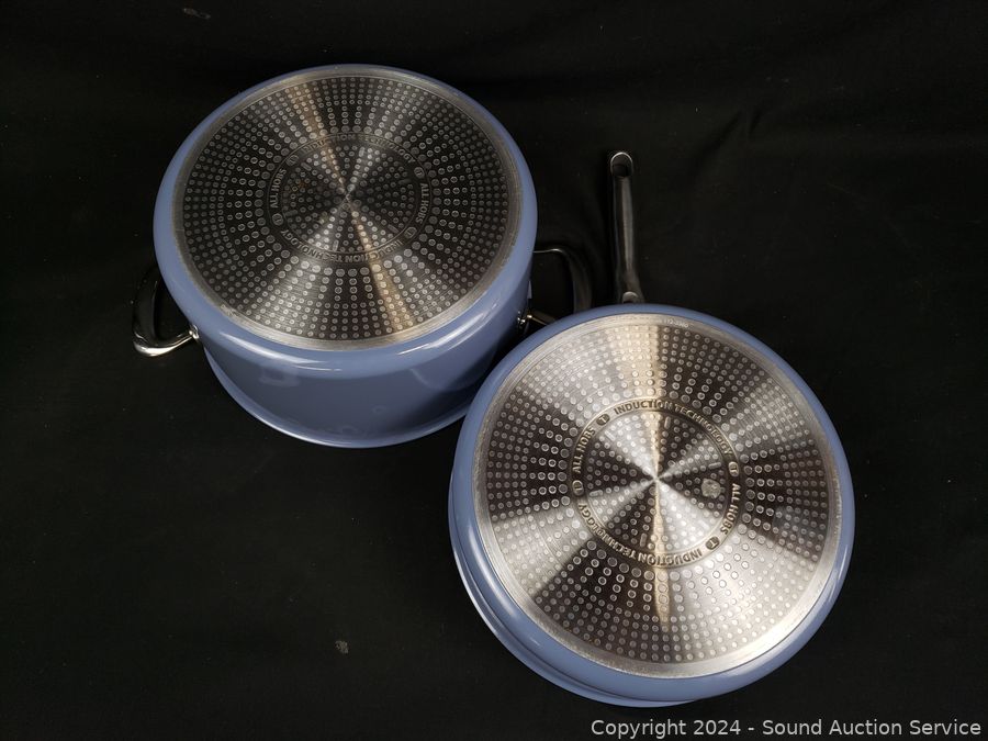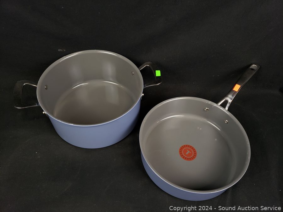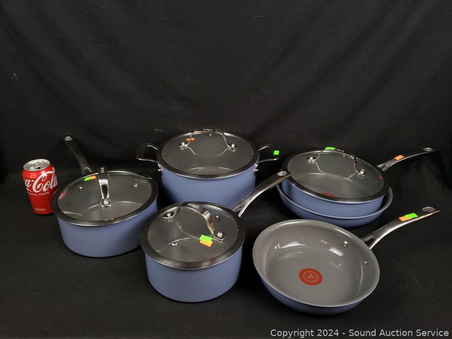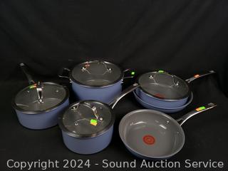 Lot #0132: 6 T-Fal Blue Non-Stick Pan Set w/4 Lids