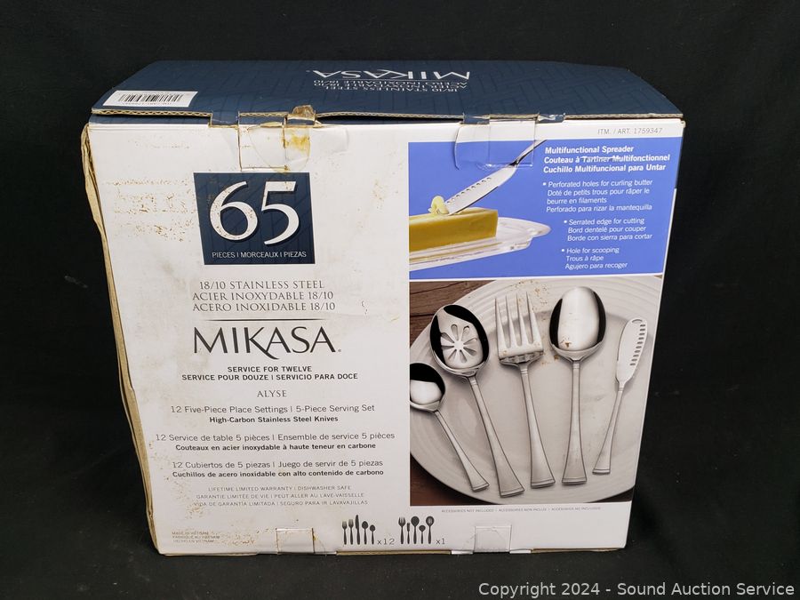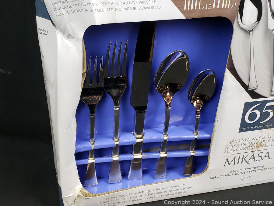 Lot #0105: 63pc Mikasa Alyse 18/10 Stainless Flatware Set