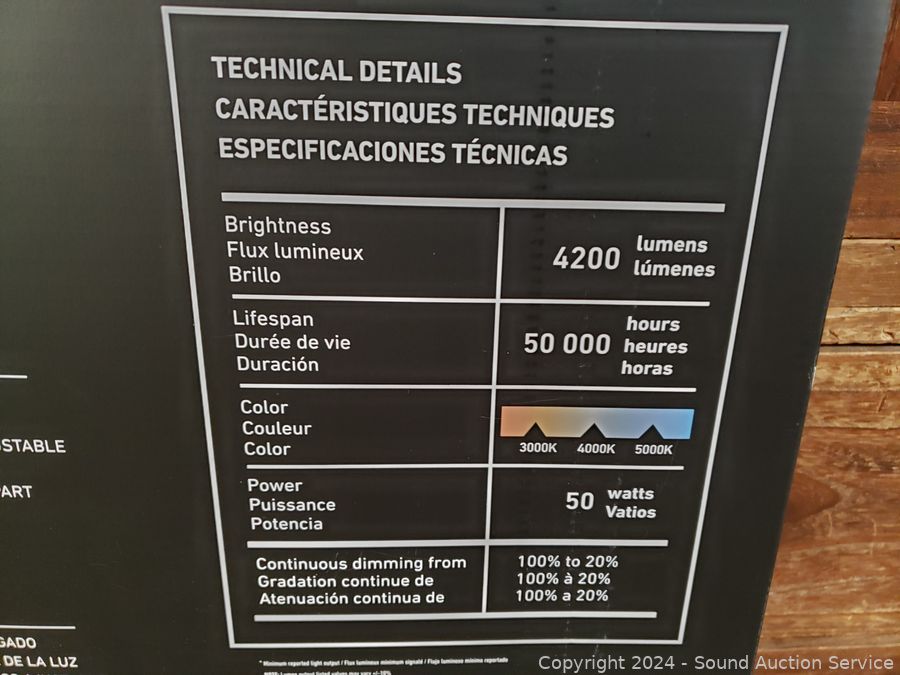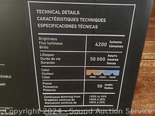 Integrated LED's, 50W, 4200LM, 3000-5000K Color. 0.6" x 12" x 48". Appears new, complete. Don't see any issues.
