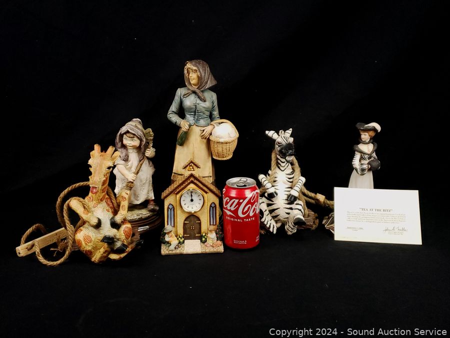 G. Armani "Gulliver's World" Figure, "Children's Prayer Clock", "Swinging Zebra", "Swinging Giraffe", Lenox "Tea at the Ritz" w/CoA. Refer to photos for more details.