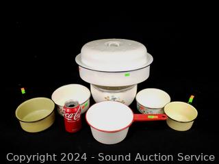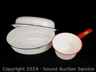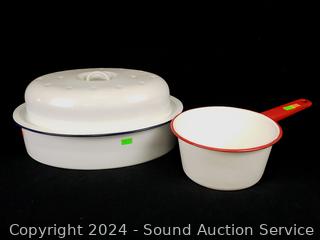 Lot #0212: Assorted Enamelware Pots, Bowls & Roasting Pan w/Lid