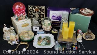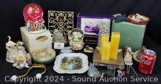 Lot #0330: Assorted Knick Knacks Decor & Tote w/Lid