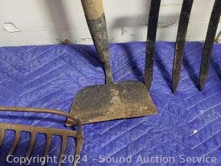 Hoe, Brush Torch, Scrapper, Potato Fork, Cultivator, Leaf Rakes, Push Brooms/Brushes, Brush Rake. Refer to photos for more details.
