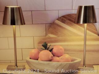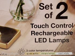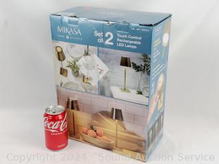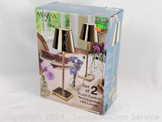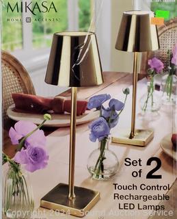 Lot #0233: 2 Mikasa 14" Brass Touch Control Rechargeable LED Lamps