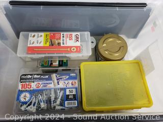 Lot #0213: 2 Small Totes Loaded w/Various Screws, Nails