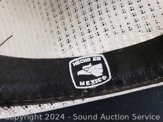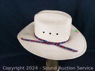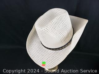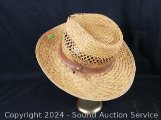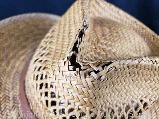 Dorfman Pacific 100% Cotton Brimmed Hat S:M, Woven Hat S:6-3/4, White San Francisco White 7-1/8, Summer Club Australia Straw Woven (has a break, hole in the front crease).