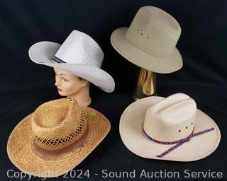 Lot #0181: 4 Woven Brimmed Hats & Dorfman Hat