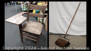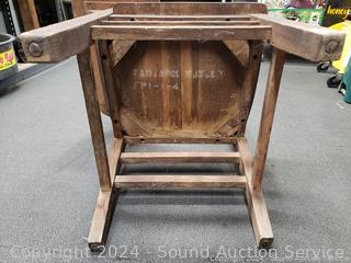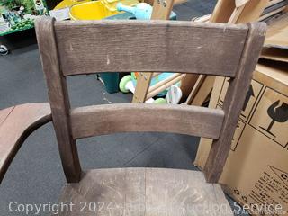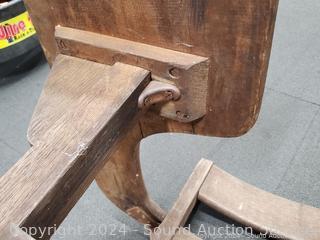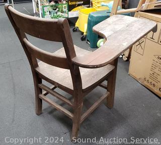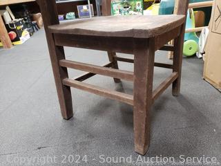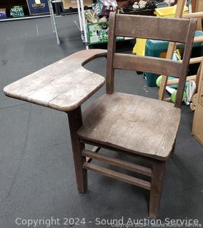 Vintage Oak Desk - Various wear from age use, weathering. 32.5" H x 18" W x 17" to seat.