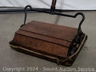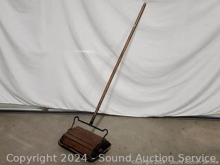 Antique Bissell's Push Sweeper - Not functioning properly, brush roller is not rolling but does spin, rope border is loose. As is.